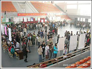 12月26日下午,我院2007届毕业生就业招聘会在体育馆隆重举行。本次招聘会共有来自省内外的140多家企事业单位报名参会,实际到会的单位为107家。其它40几家报了名而未参加的单位主要是受大雾天气影响交通,未能及时到会,这些单位表示要通过其它方式来校招聘。本次实际参会的107家单位带来了1500多个就业岗位。