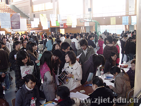 12月20日下午,我院2008届毕业生就业招聘会在体育馆隆重举行。省内外共172家企事业单位参会,带来就业岗位2500多个。据不完全统计,参加这次招聘会的学生超过4000人,除我院近2千多毕业生外,还有来自下沙高教园区其它兄弟院校的毕业生。本次招聘会,得到了杭州市人才开发中心下沙分中心和名企人才网的大力支持。