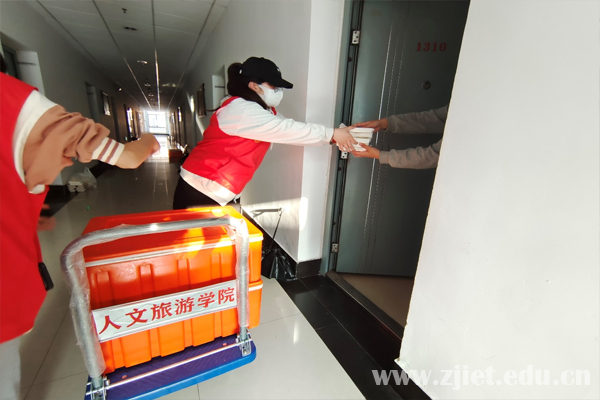 为了能够准确传递隔离点日常餐食和生活物资,人文旅游学院学生党支部充分调动支部党员、入党积极分子与隔离同学建立起“一对二”机制,即一名隔离同学由两名入党积极分子保障其日常生活需求。“一呼百应,有求必应”,人文 “红马甲”们以实际行动保障学生身心健康,筑牢学校疫情防控安全防线。人文青年志愿者们纷纷表示:“我们一定会在保证自身安全的前提下完成校园防疫活动,为校园防疫贡献力量。”