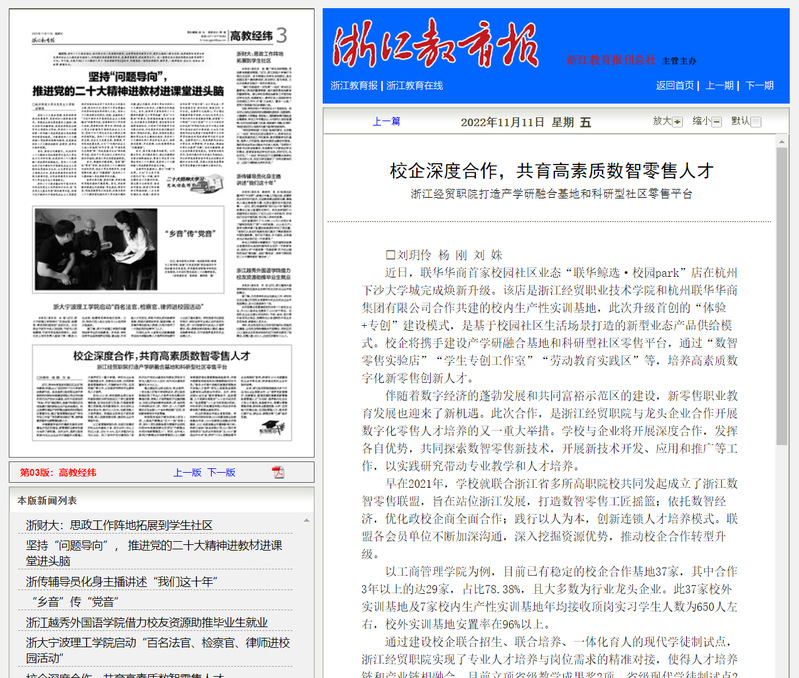 浙江教育报:校企深度合作,共育高素质数智零售人才——浙江经贸职院打造产学研融合基地和科研型社区零售平台
