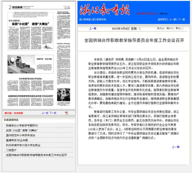 浙江教育报:全国供销合作职教教学指导委员会年度工作会议召开
