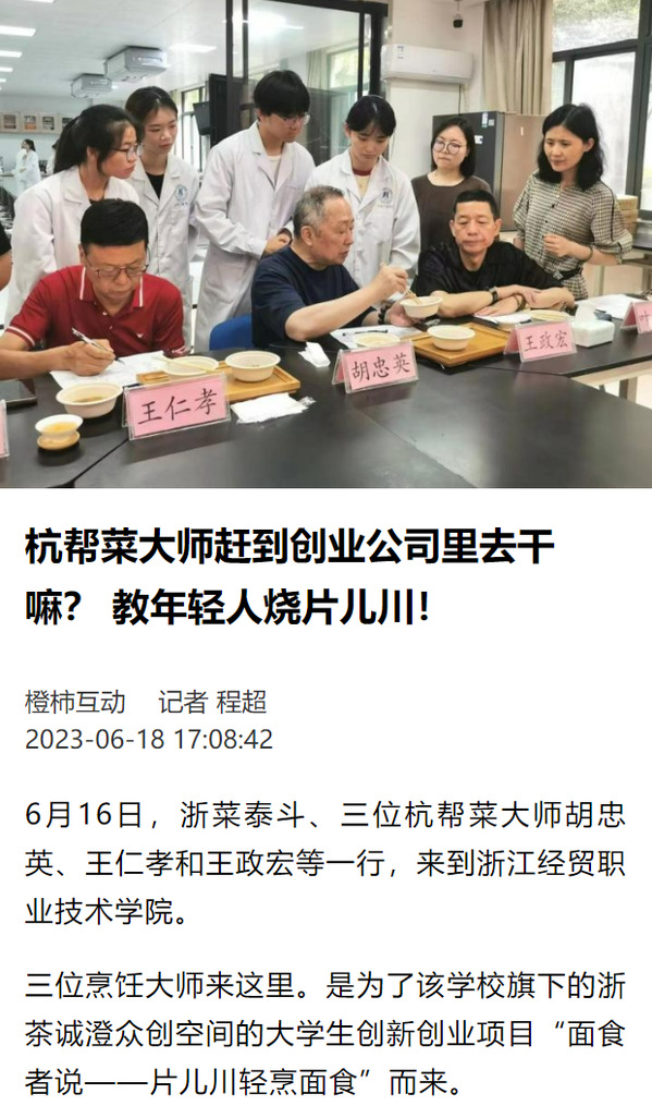 橙市互动 | 杭帮菜大师赶到创业公司里去干嘛? 教年轻人烧片儿川!