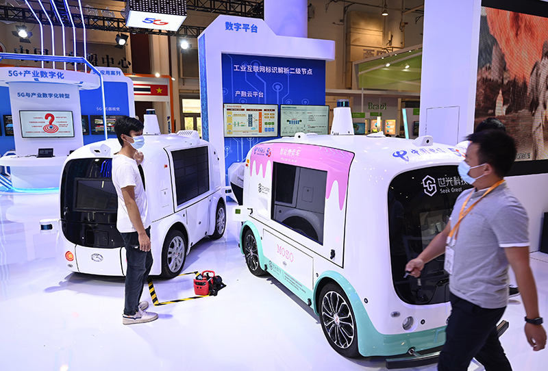 中国制造的智能汽车模型在2021金砖国家新工业革命展现场展出(2021年9月9日摄)。新华社记者 林善传 摄