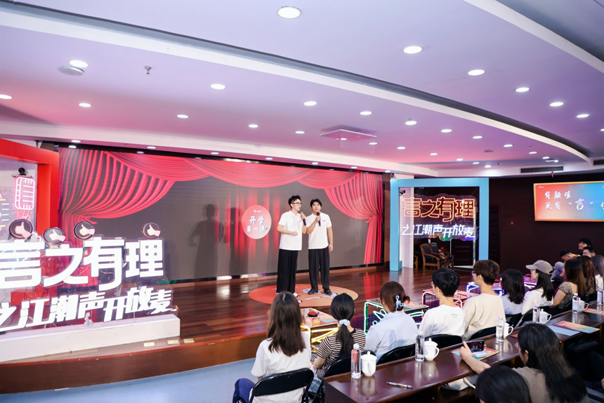 刚于上周结束“上新了,00后talker”训练营的王庆泽、姜歌,作为理论宣讲“后浪”,也参与到了当日宣讲进高校的活动中。紧锣密鼓的训练营让两位明白了何为理论、何为宣讲,促使他们创作出了精彩的作品。